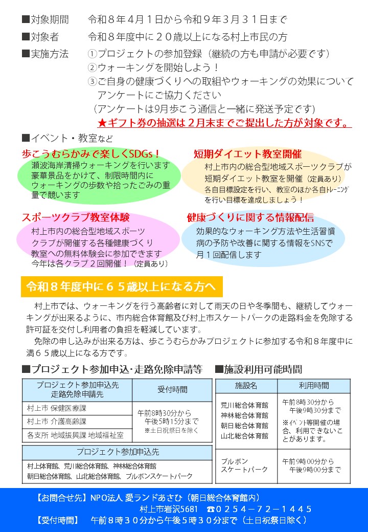 >>R8歩こうむらかみプロジェクト申込書(PDF) (0.1MB)